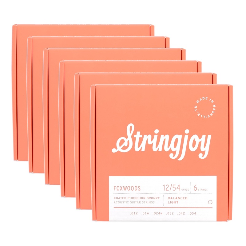 This Bundle Includes:6 x Stringjoy Foxwoods Acoustic Coated Phosphor Bronze Light Gauge 12-54Looking for a set of acoustic strings that have just the right amount of tension, the right amount of tone, and still have enough volume to annoy your neighbors? T