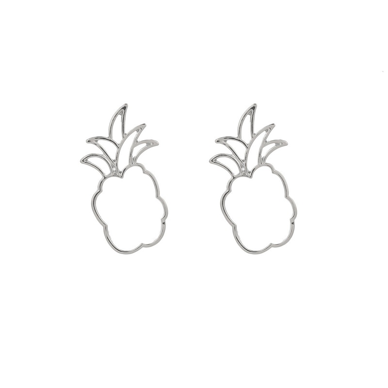 Stylish Hollow Pineapple Earrings with Rhinestone Face Mask Accent