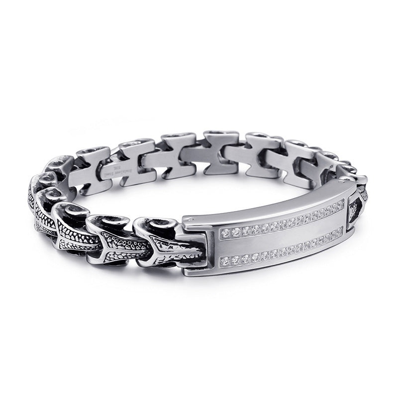 Stylish Men’s Titanium Steel Retro Curved Bracelet with Micro-Inlaid Zircon