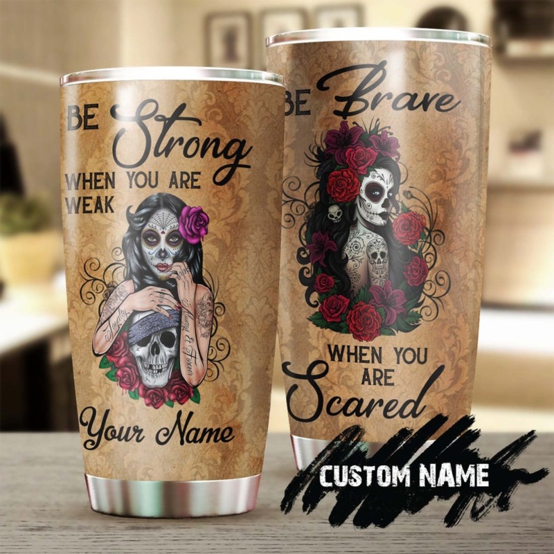 Sugar Skull Be Brave When You Are Afraid Personalized Fancy Unique Tumbler-Skull Tumbler-Skull Birthday Gift Christmas gift for her for him