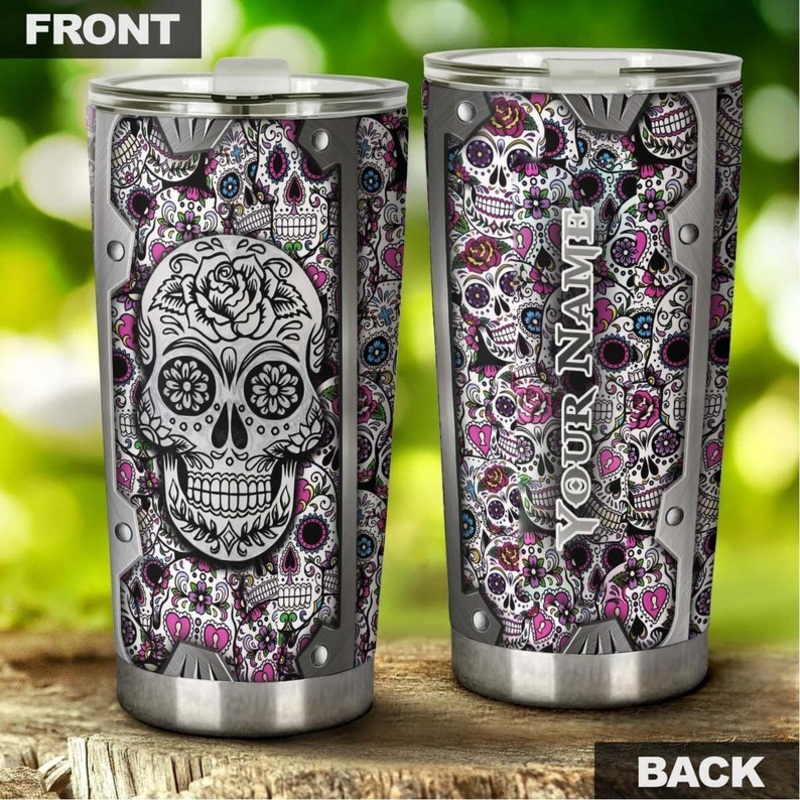 Sugar Skull Pink Metal Style Personalized Tumbler-Skull Tumbler-Skull Birthday Gift Christmas gift Mother’s day gift