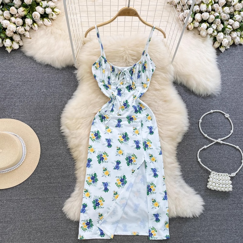 Summer Floral Spaghetti Strap Slit Dress 958