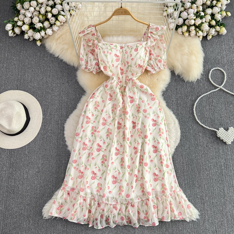 Product NO. :1475Size: S M LCollar type: square collarWaist type: high waistColor: Apricotsleeve length: short sleeveSkirt length: mid-length skirtSize details(cm):S: Length 111 Bust 86 Sleeve 26 Waist 66M: Length 112 Bust 90 Sleeve 27 Waist 70L: Length 11