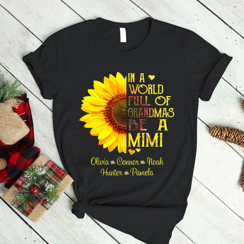 Sunflower In a world full of Grandmas be a Mimi with Children names.High-quality fabric material with lots of beautiful colors for the whole family, mimi, nana,grandma, grandpa, papa, daddy, baby, mommy, brother...This design also can be an awesome present
