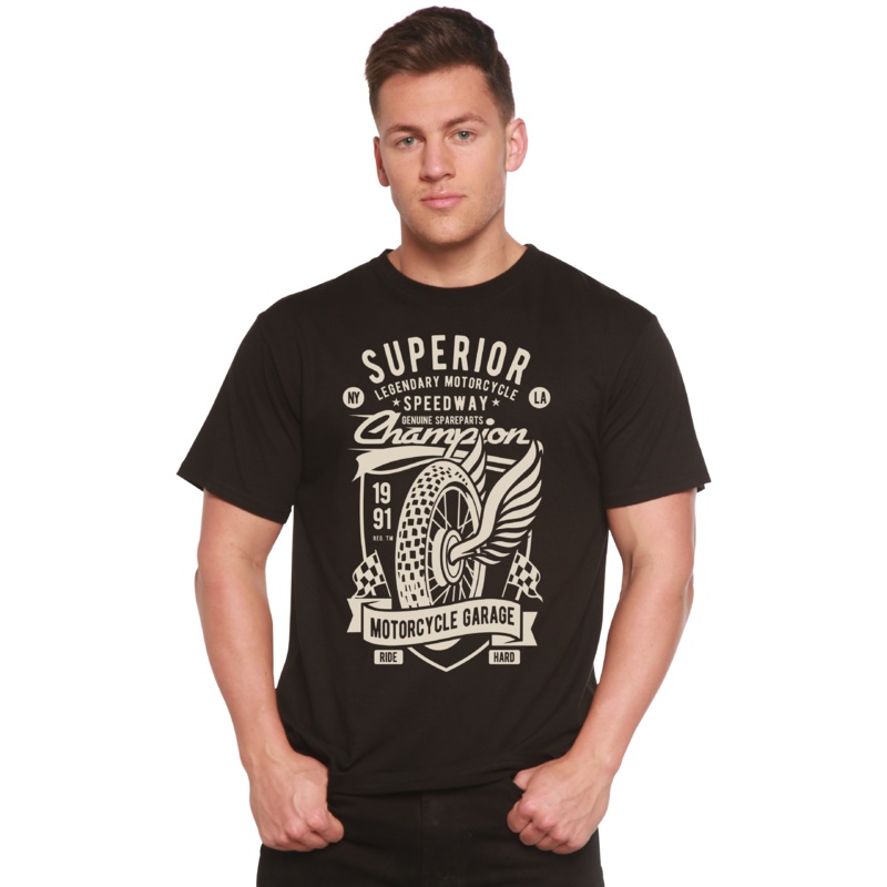 Superior Motorcycle Spun Bamboo Men’s Bamboo Viscose/Organic Cotton Short Sleeve Graphic T-Shirt Medium Black
