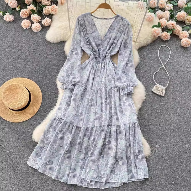 Sweet Floral Fairy Skirt V Neck Spring Dress 1257