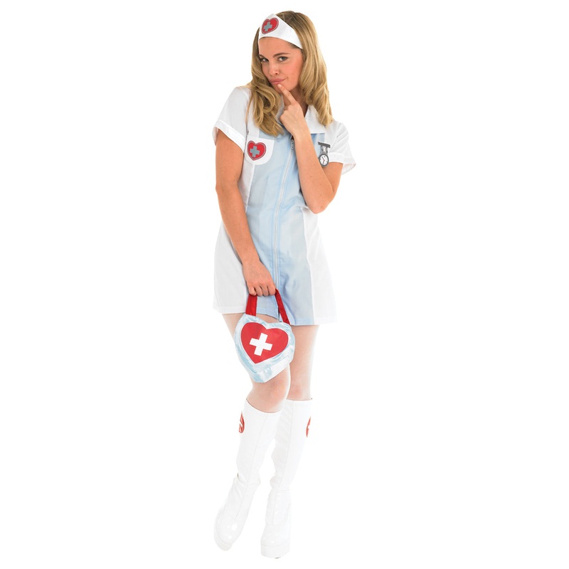 Ladies' Sweetheart Nurse Fancy Dress Costume Perfect your bed side manner with this alluring Ladies' nurse fancy dress costume. The outfit is based on a traditional nurses uniform but styled with a sexy twist as we all know that Men cant resist a Woman in
