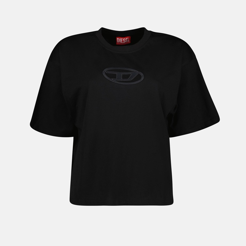 T-shirt crop T-Buxt Diesel collection Automne-Hiver 2024 pour Femme. Ralis en coton et lasthanne. Article Couleur unie noir. Col rond et Manches courtes. Cet article est disponible en plusieurs dclinaisons.