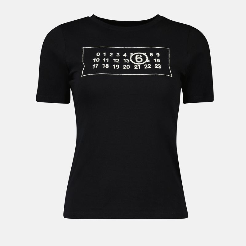 Le T-shirt Numeric gris de Mm6 est un vtement fminin de la collection Automne-Hiver 2025. Il prsente un col rond, des manches courtes et une coupe droite en coton.