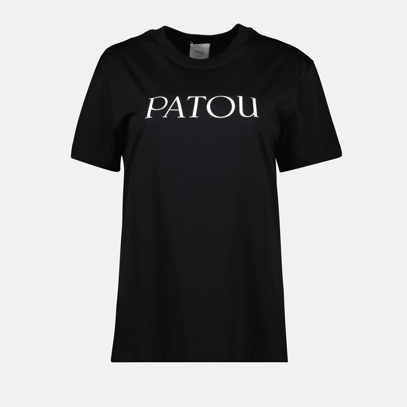 Le T-shirt Patou noir est un vtement fminin de la collection Automne-Hiver 2025. Ralis en coton biologique, il prsente un col rond, des manches courtes et un logo imprim.