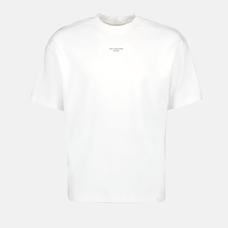 T-shirt Slogan Classique blanc en coton de la marque Drle de Monsieur, conu pour homme. Ce modle fait partie de la collection Printemps-t 2025 et est disponible en plusieurs couleurs.