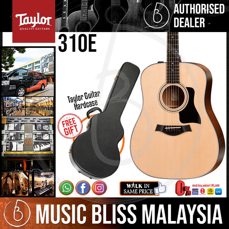 Taylor 310e - Sapele Back and Sides with Hardcase (310-e / 310 e)Packed with modern style and traditional touches, this Taylor 310e acoustic-electric guitar epitomizes the definitive Taylor tone. From the very first strum, you'll fall in love with this aco
