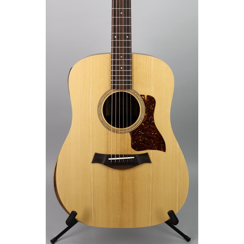 The patented Taylor neck features a slightly shorter 24-7/8-inch scale length, 1-11/16-inch nut width, and light gauge strings, which make fretting and bending strings easier. Tonally the Dreadnought’s body dimensions produce a bold response with a warm low end and punchy treble, making this a great option for strummers and flatpickers. Onboard ES-B electronics include a built-in digital chromatic tuner with an LED display for tuning and low battery indication. Whether you’re at the front end of you guitar journey or just looking for a great strumming guitar without breaking the bank, the A10e will serve you well.