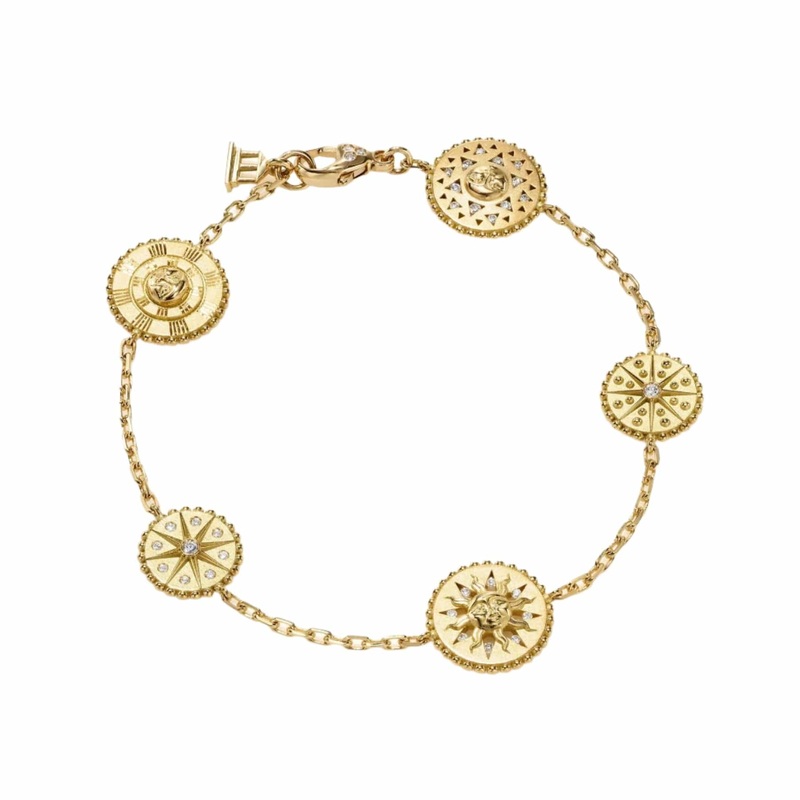 18k yellow gold bracelet featuring 5 motifs set with diamond accents.