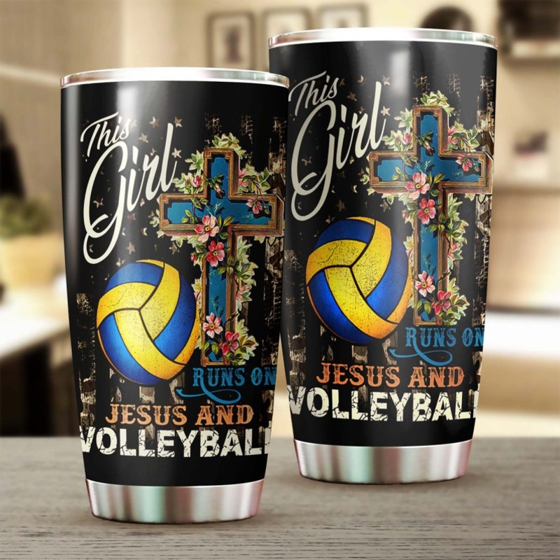 This Girl Runs On Jesus And Volleyball Tumbler-Jesus gift -Birthday Christmas Gift for Jesus lover Catholic Christians