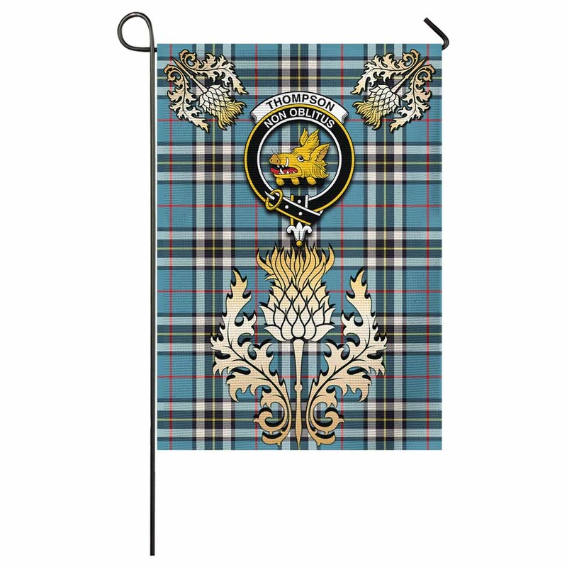 Thompson (Thomson) Tartan Garden Flag with Golden Regal Scottish Thistle Emblem