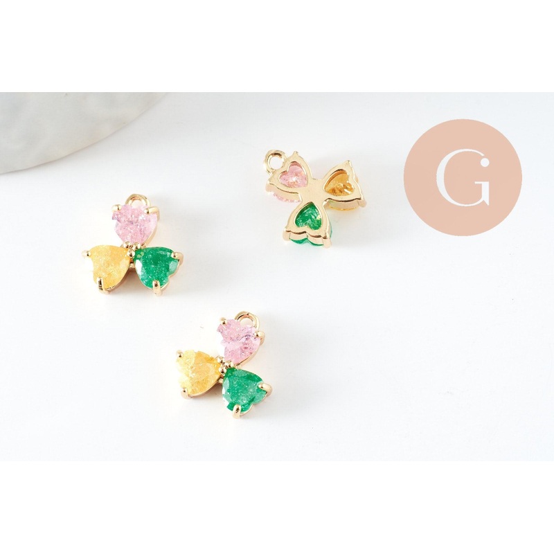 Be the first to review “Three-leaf clover pendant in 18K gold-plated brass and colored zircons, brass leaf charm, 14mm, x1 (G4457)”