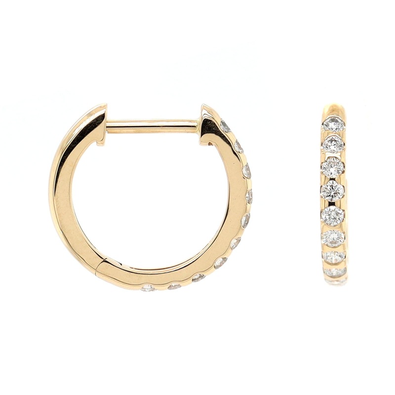 Three Stories 14K Yellow Gold Classic Diamond Huggie Hoops