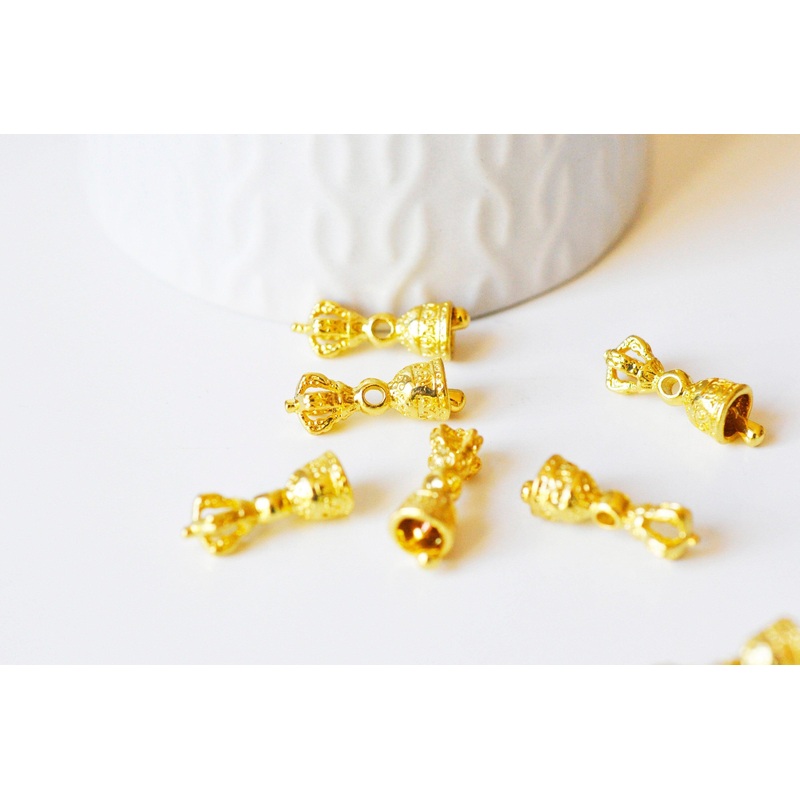 Tibetan Dorje Vajra bell pendant in gold-plated brass, raw brass charm, brass jewelry, raw brass pendant, 22mm, x1 G4459