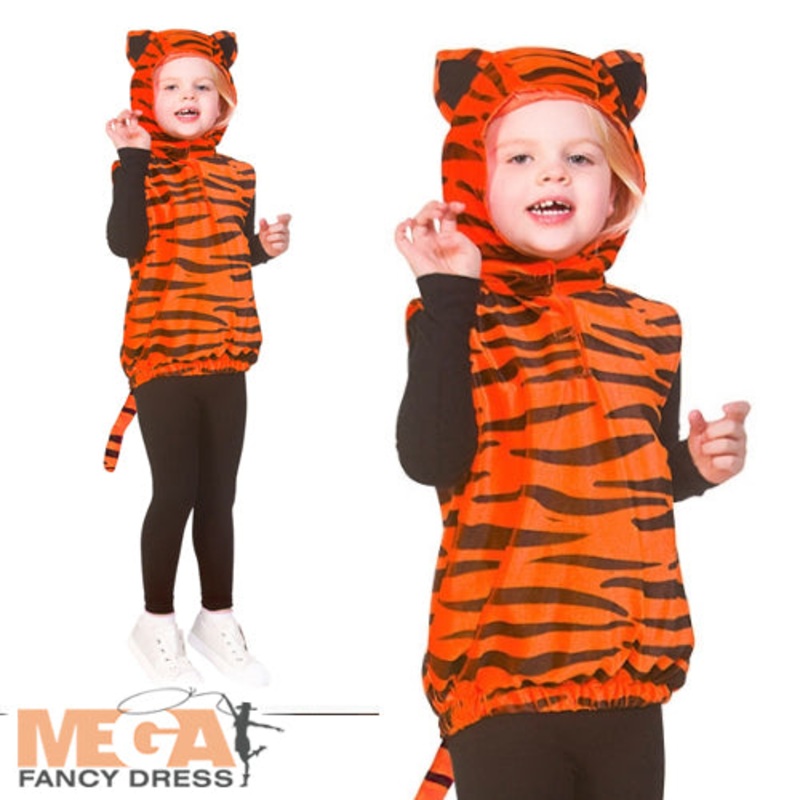 Kids Tiger Tabard Costume Includes: Hooded Tiger Tabard