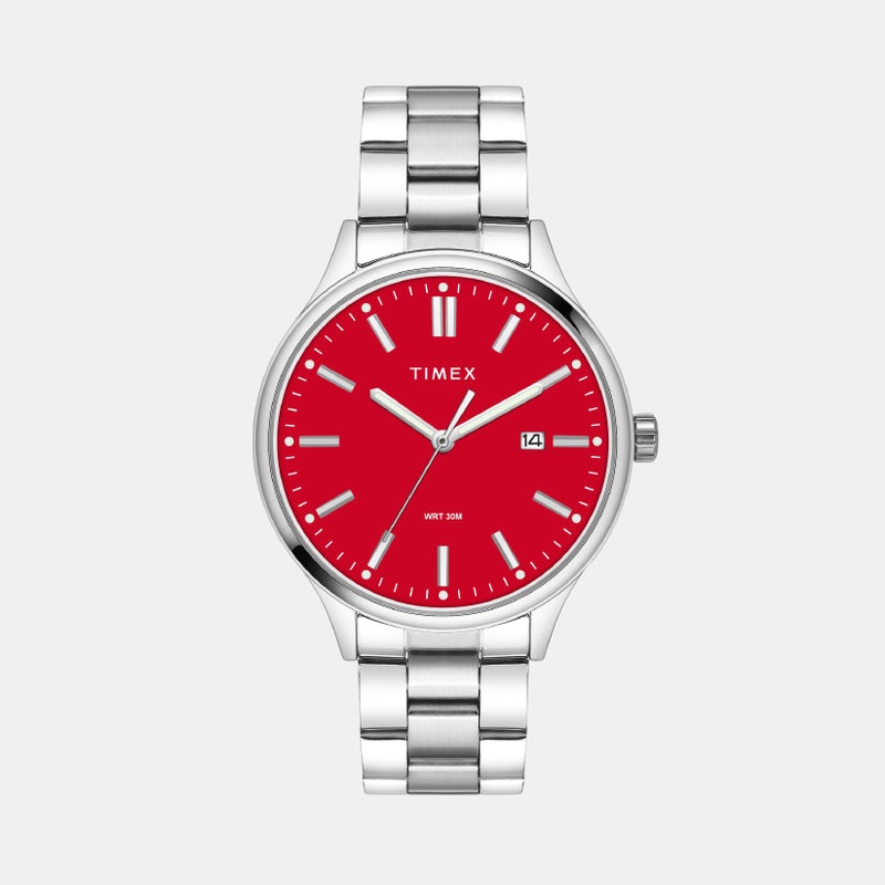 Timex Fashion Men Quartz Red Dial Analog Stainless Steel Watch TWEG18431