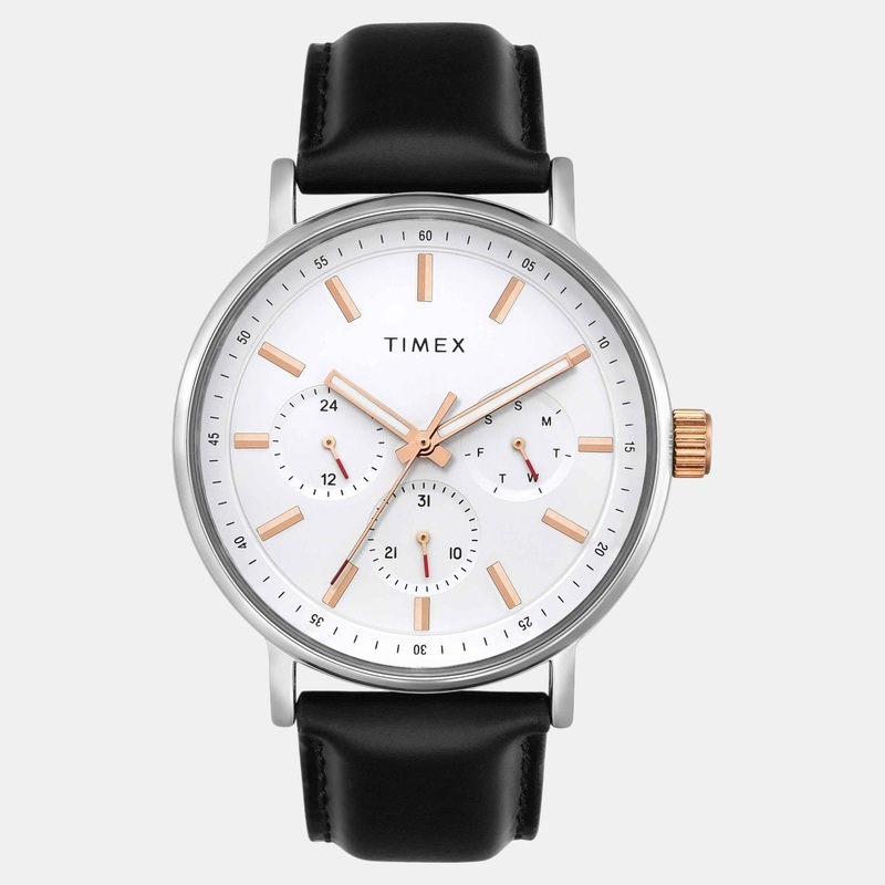Timex Fashion Men Quartz White Dial Multi-Function Leather Watch TWEG20021