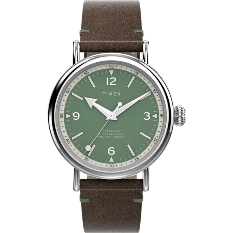 Timex Standard Green Dial Brown Leather Strap Unisex Watch TW2V71200