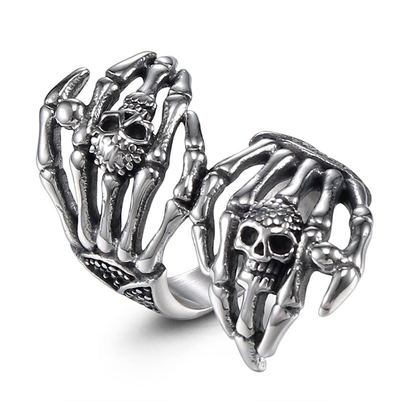 Titanium Steel Double Phantom Hand Ring – Bold Punk Aesthetic for Women