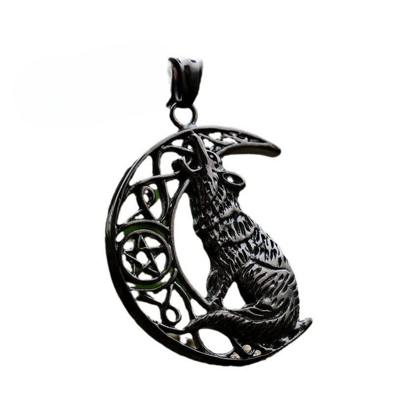 Titanium Steel Nordic Viking Moon Wolf Pendant for Men – Wholesale Electroplated Design