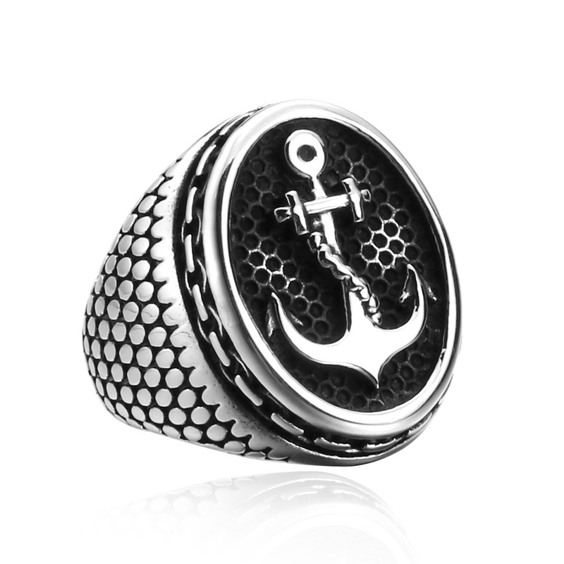 Titanium Steel Retro Anchor Ring for Men – European and American Creative Jewelry Trend