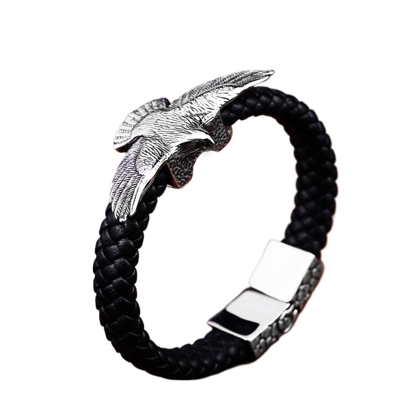 Titanium Steel Retro Eagle Leather Bracelet for Men – Wholesale Fashion Jewelry