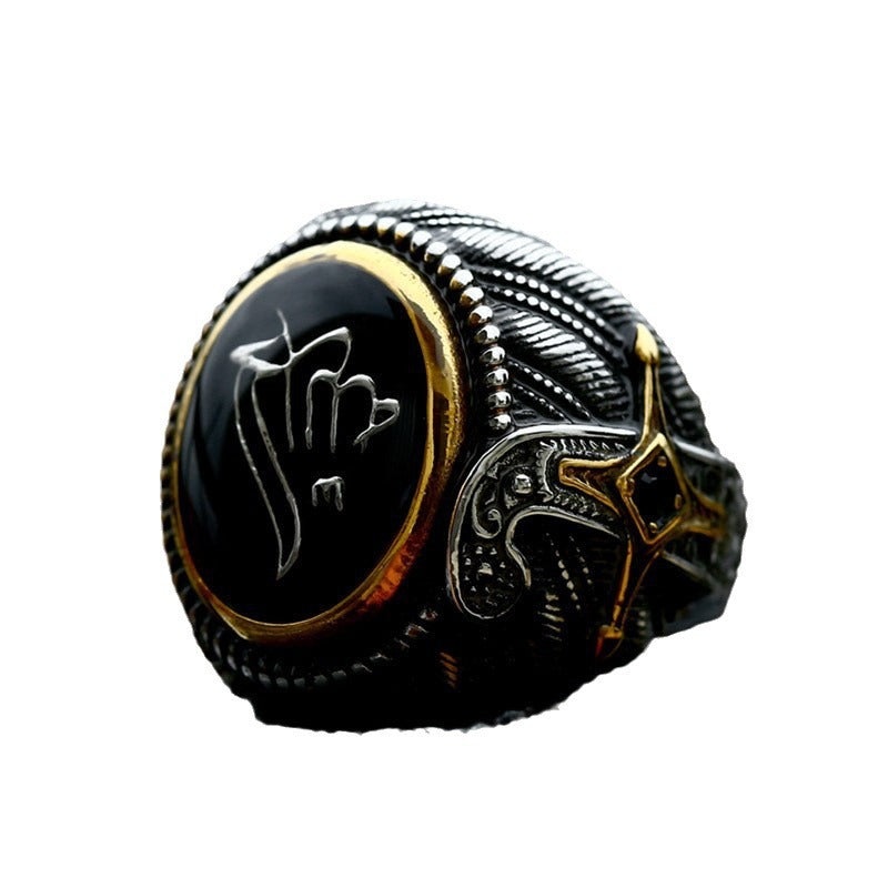 Titanium Steel Retro Personalized Men’s Ring – Wholesale European and American Domineering Jewelry