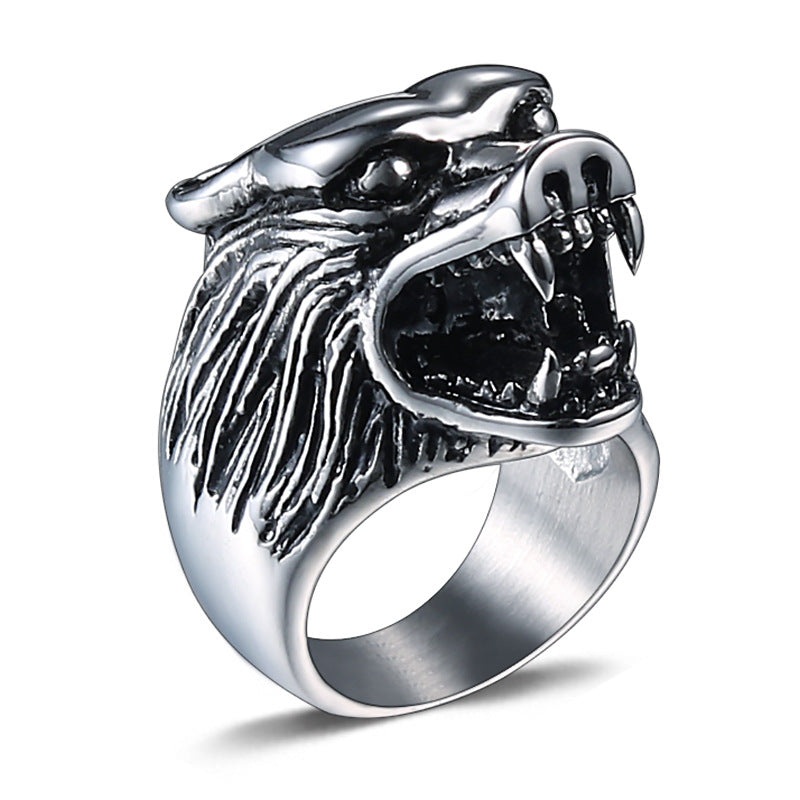 Titanium Steel Wolf Head Ring for Men – Vintage American and European Inspired Dominant Totem Design