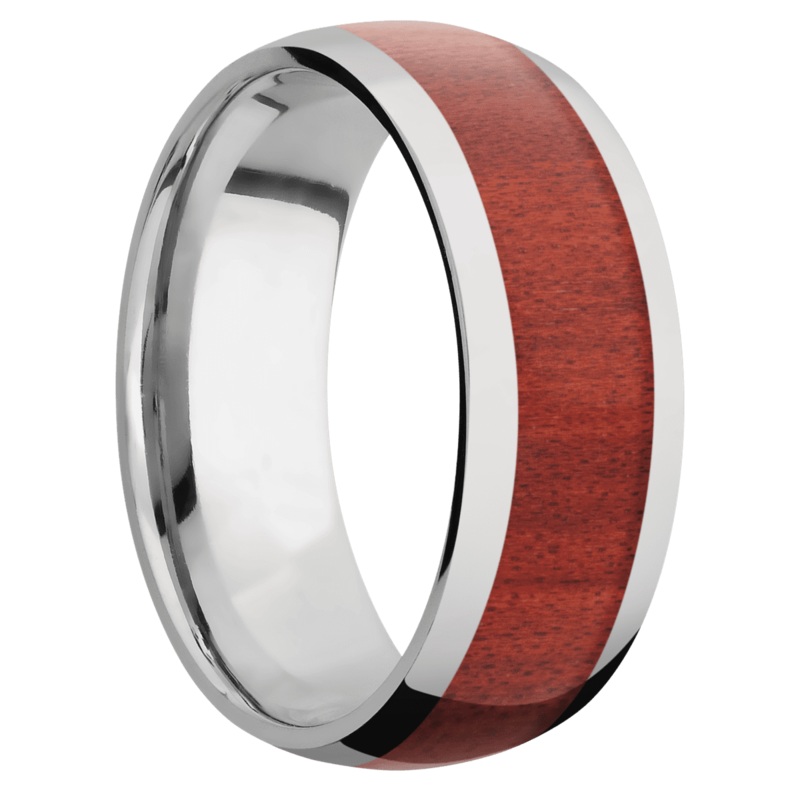 8 mm wide/Domed/Titanium band with one 5 mm Centered inlay of Red Heart.
