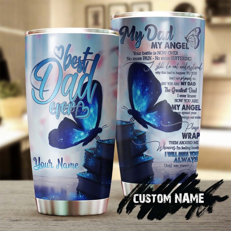 To My Dad My Angel Butterfly best dad ever your battle is over Personalized Tumbler-Memorial gift Christmas Gift for Butterfly Lover For HerGift of Love: A meaningful gift for your friends, family members, wife/husband, bridesmaid/groomsmen, coworkers on b