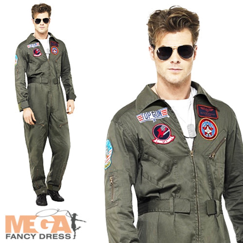 This fantastic Film fancy dress contains everything perfect for joining the Top Gun naval flying school and comprises of a green khaki coloured pilot jumpsuit decorated with realistic pilot badges and of course, a pair of tinted aviator sunglasses.