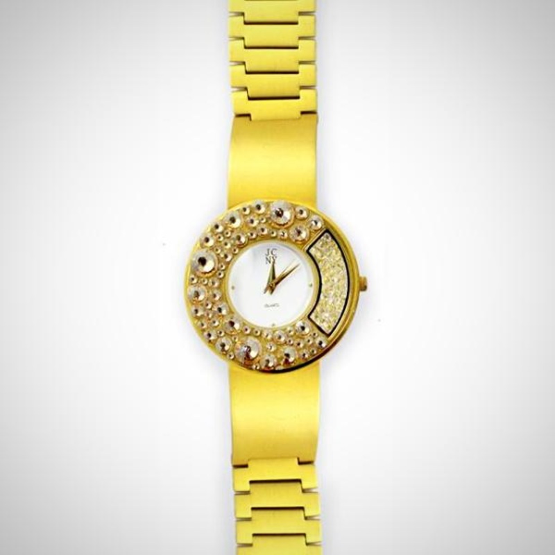 Embellished with crystals, which are set by Jimmy Crystal's expert craftsmanship. This product provides unparalleled aesthetics to transcend elegance. JCNY steel logo at 12 o'clock position Mineral glass protects the watch from scratches Stainless steel ca