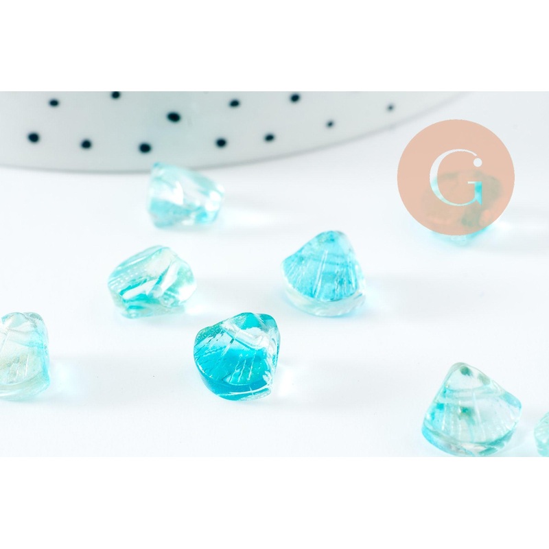 Green transparent glass shell bead, Czech glass beads, shell bead, purple glass, jewelry creation, 10.5mm, lot 10 beads Adorable transparent glass beads painted green, with golden iridescent reflections, in the shape of a shell. They will perfectly complem