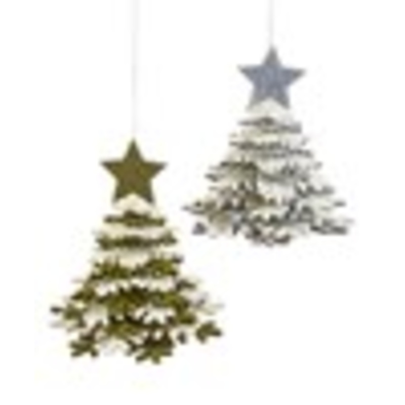 Trim the tree for the holidays with this ornament featuring layers of snowflakes and a star topper. Available in 2 assorted colors: Grey and White, Green and White. Polyester.
