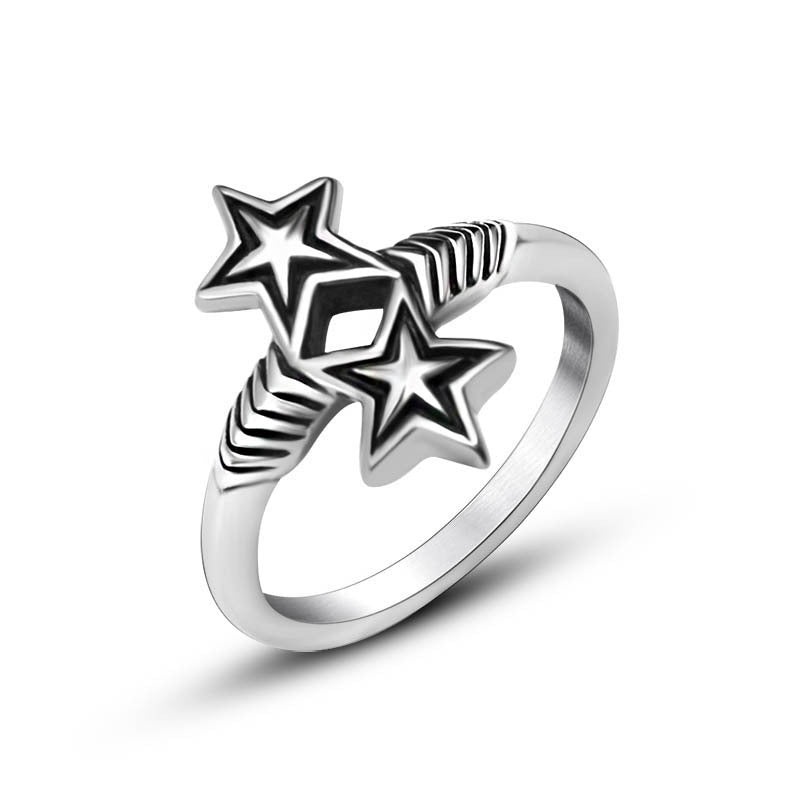 Trendy Retro Double Star Ring for Men and Women, Korean-Inspired Titanium Steel Accessory