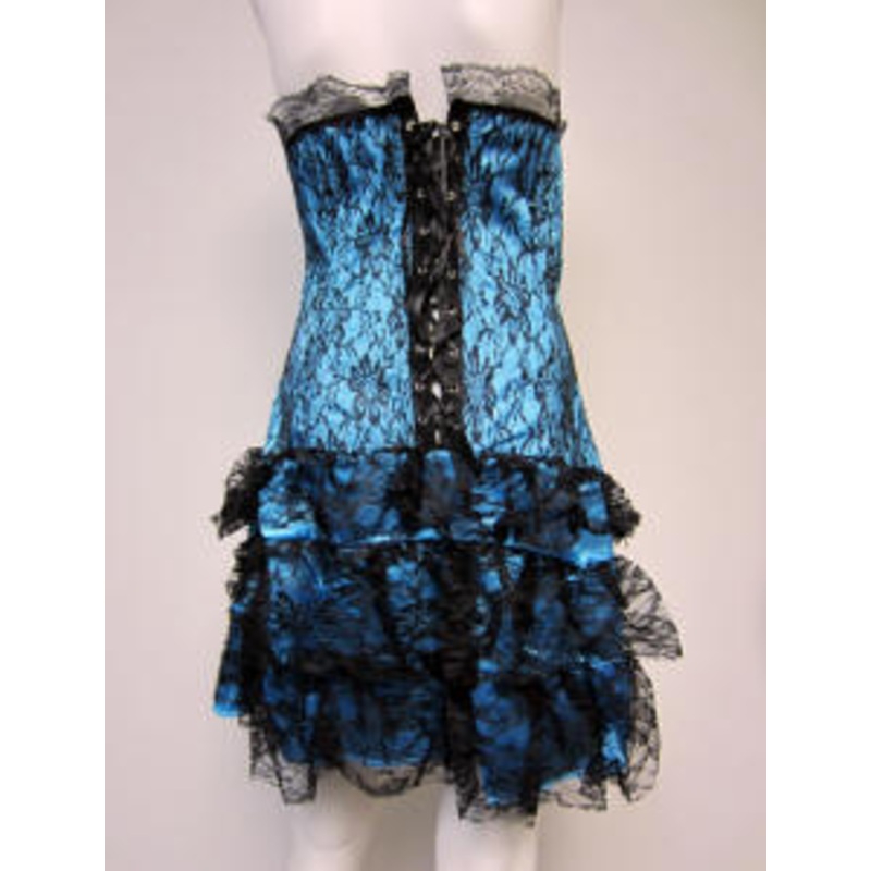 Includes: Lined back lace-up corset dress with hidden side zipper features light boning for comfortable shaping. Tortoise fabric with decorative lace overlay. Lace trim on top and skirt.Size (Ribcage/Waist/Hip-7" Hipline):S: R: 28"/ W: 26"/ H: 32", XL: R: