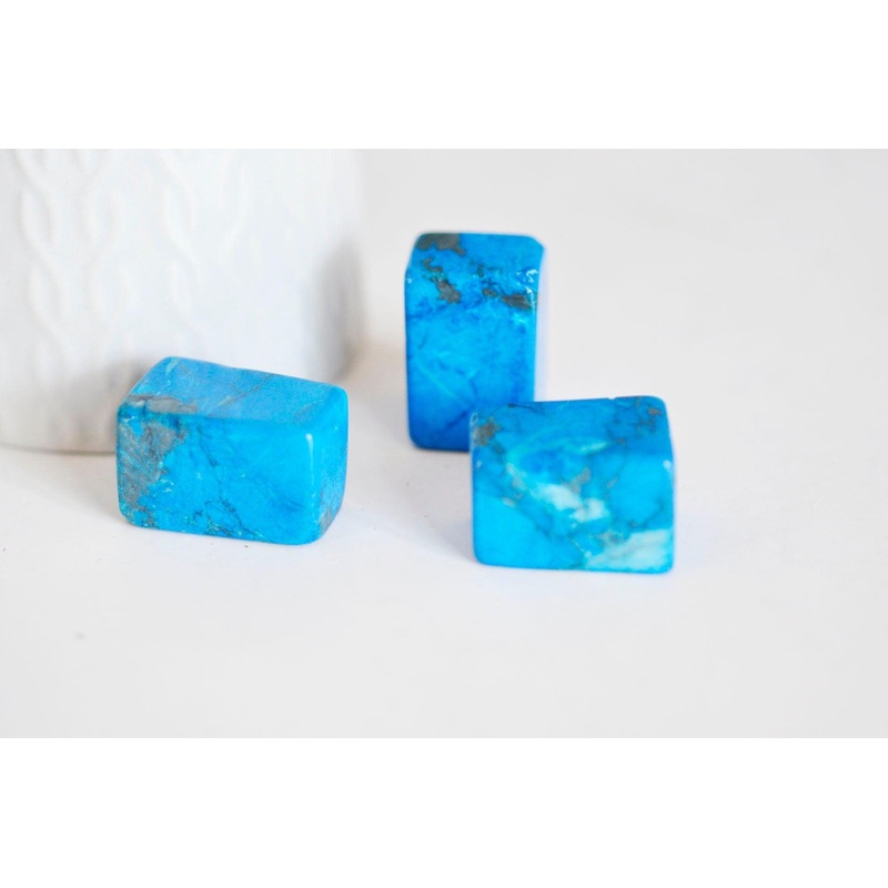 Turquoise howlite pieces, creative supplies, raw stone, natural howlite, semi-precious stone, jewelry creation, stone Natural Dyed Howlite in Undrilled Rectangular Pieces Tinted stone Sold in 20 gram bags To make your jewelry, use raw, set, glue, mix with