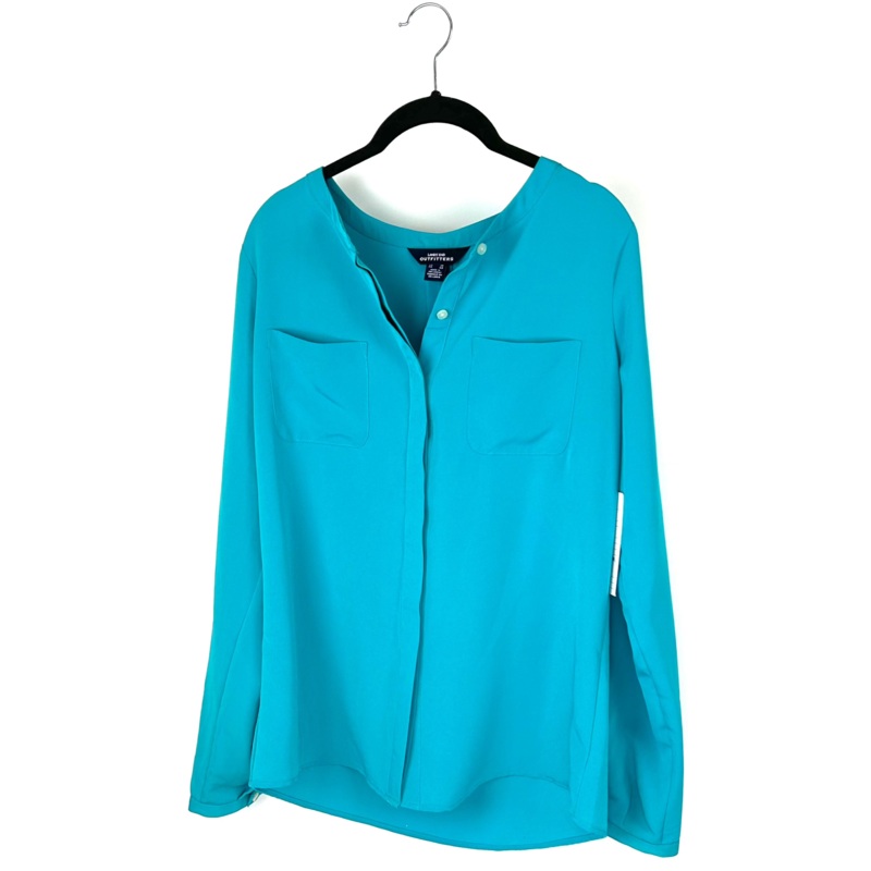 Lands’ End Outfitters lightweight, turquoise blouse with long sleeves, button up front and frontpockets