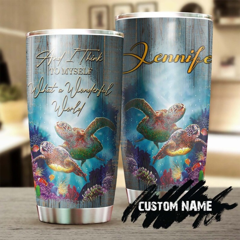 Turtle I Think To Myself What A Wonderful World Personalized Tumbler-Unique Tumbler-Birthday Christmas gift for Turtle LoverGift of Love: A meaningful gift for your friends, family members, wife/husband, bridesmaid/groomsmen, coworkers on birthdays, Mother
