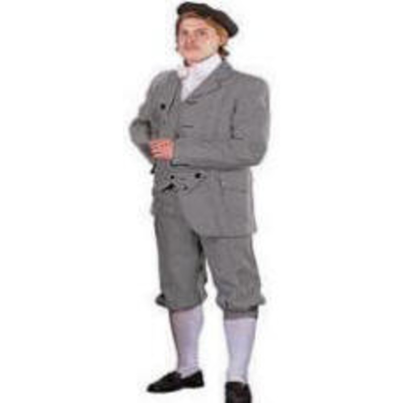 Circa 1860's - 1919Includes: Early 20th century style belted jacket, vest, knickers (shown) & pants (not shown).Color: Black, Brown, Blue, Gray, Tan,Black Tweed (TBC), Brown Tweed (TBN),Subtle PlaidSize: S (34-36), M (38-40),L (42-44), XL (44-46)Fabric: Wo