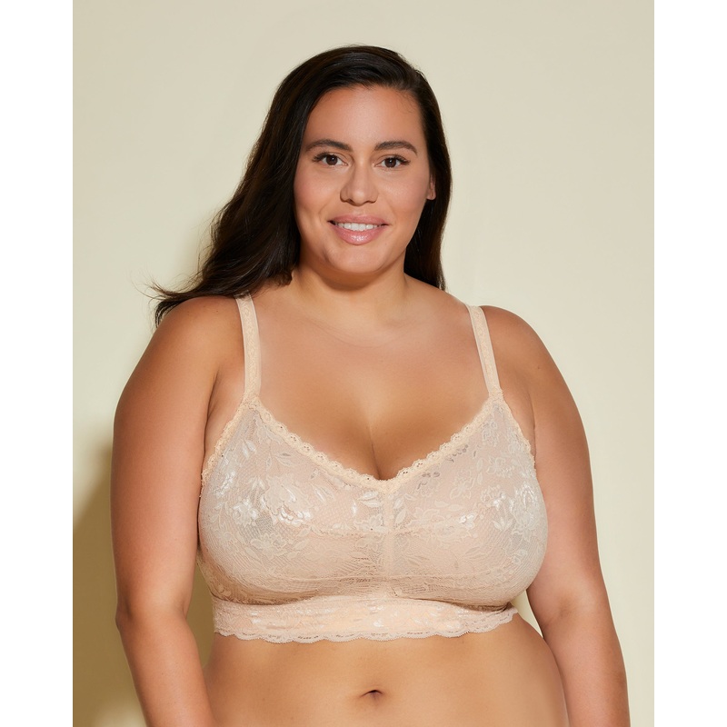 Wireless bralette designed for ultra-fuller busts with smaller bands.Soft stretch, non-sheer scalloped lace lined with power mesh for support.Sweetheart neckline and non-padded cups.Pull-on style.Wide, adjustable, lace and elastic straps.Lace: 93% polyamid