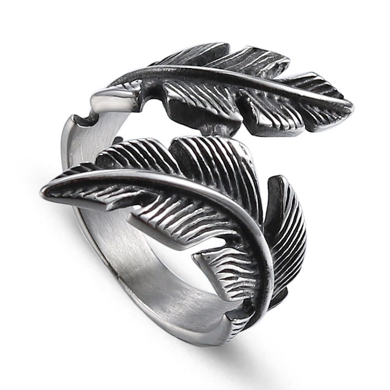 Unisex Retro Feather-Inspired Titanium Steel Ring – Stylish Jewelry for Men and Women