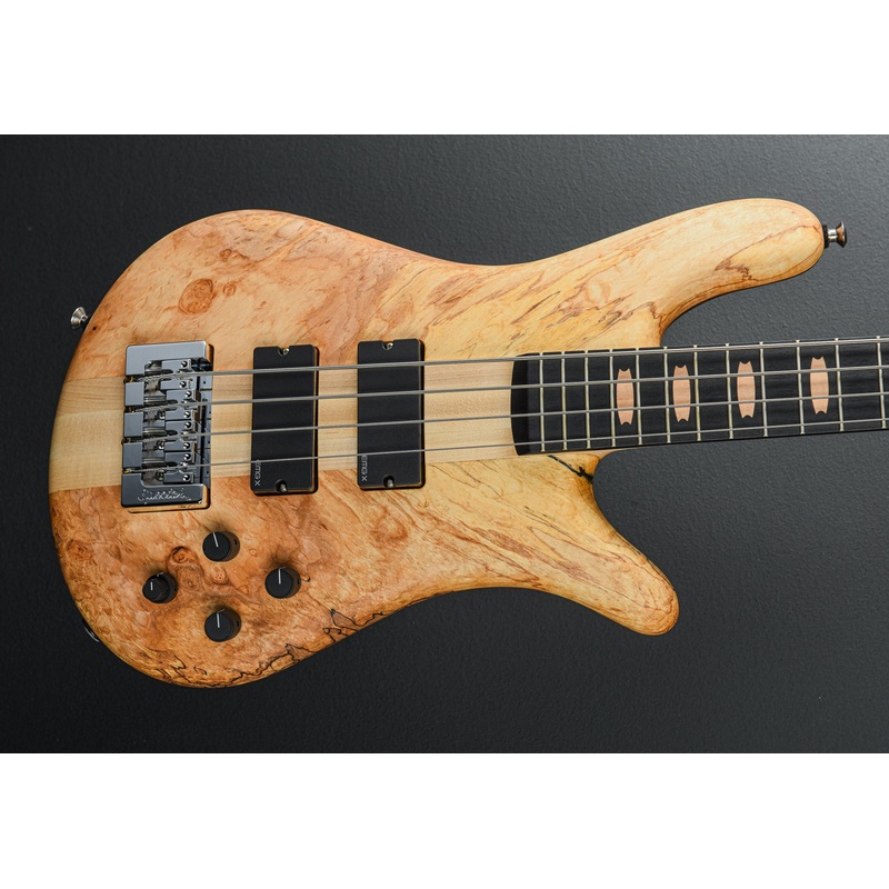Natural, oil finished Book matched Chestnut top, Black Walnut Back, Standard NS Shaped neck-thru 3-piece Maple neck, Ebony headstock veneer w/ Chestnut truss rod cover and Mother of Pearl logo and staff signatures, Ebony fingerboard with Chestnut crown inlays, 34 scale length, 1.64 brass nut, standard spaced EMG – 35DCX humbucker pickups, Spector HAZ 18v preamp with volume, pan, cut/boost stacked bass/treble and cut/boost mid controls, Brass Spector bridge, Spector branded Gotoh tuners tuners, 9.4 pounds, With a Spector hardshell case
