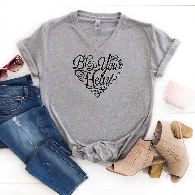 V-Neck: Bless Your Heart-Plus Sizes