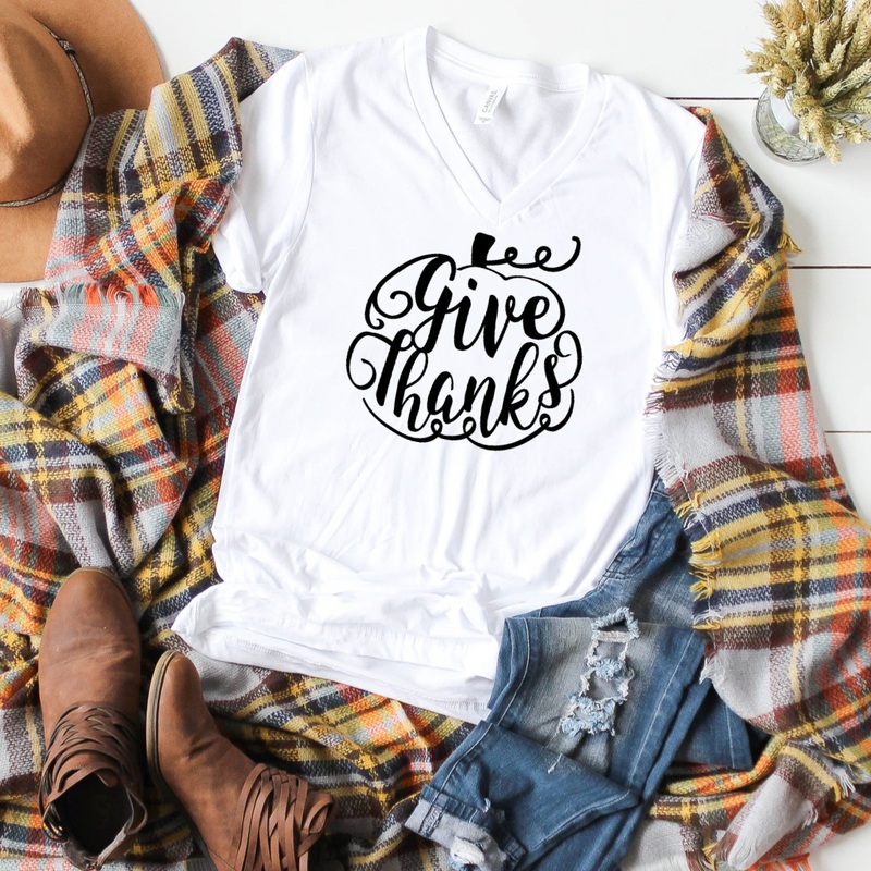 V-Neck: Give Thanks-Plus Sizes